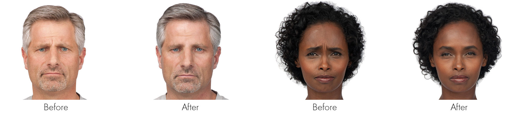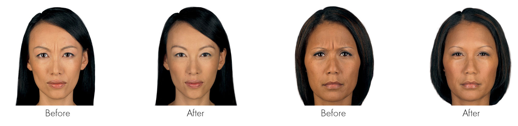 • Smoother contours around the face, between the brows, and at the corner of the eyes