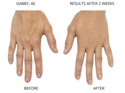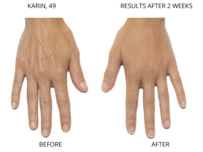 A number of different options are available if you would like hand rejuvenation. For example, the least invasive, chemical peels can help reduce pigmentation and fine lines while allowing softer skin to come to the surface. A dermal filler, Radiesse®, can be used to restore volume to your hands and reduce wrinkles. Some touch-ups are needed, but the results can last up to two years. A more involved procedure is the use of micro-fat injections, which uses fat cells from a part of your body where they’re unwanted and then purifies and injects them into your hands, where more volume is desired.
